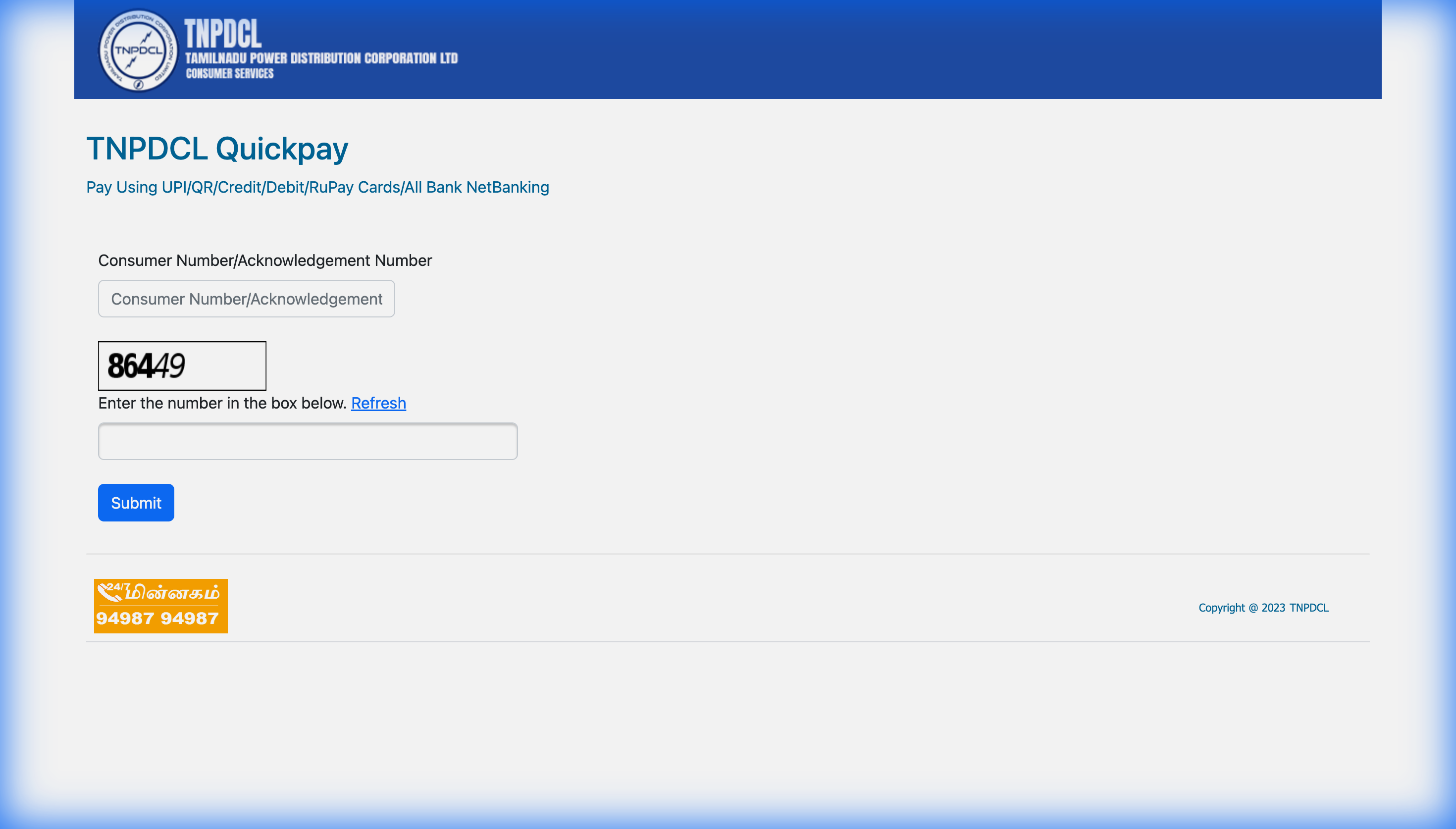 - படி 1: அதிகாரப்பூர்வ TANGEDCO Quick Pay பக்கத்திற்குச் செல்லவும்.